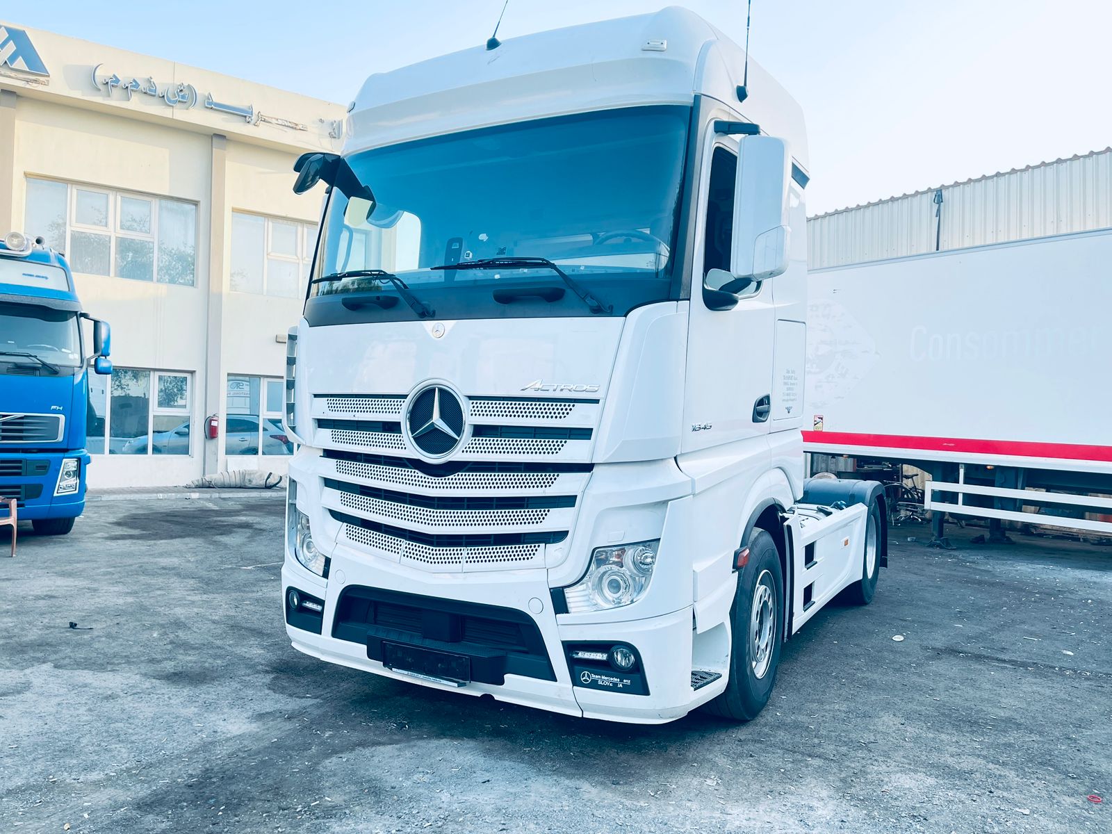 MERCEDES-BENZ ACTROS 1845 Vehicle condition Used vehicle Category Standard tractor/trailer unit Mileage 962126 km Power 338 kW (471 hp) Drive type Internal combustion engine Fuel Diesel Transmission Automatic Emission Class Euro6c First Registration 2015 Construction Year 2015 Climatisation Automatic air conditioning Colour White Axles 2 Wheel Formula 4x2 Driving Cab Long distance traffic